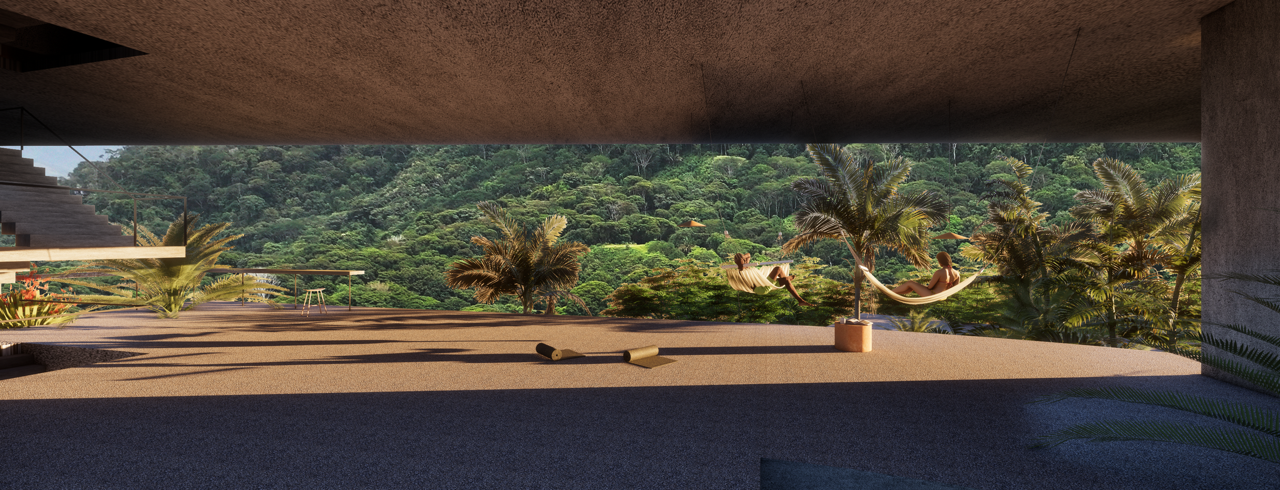 Hovering quietly over the hillside, the building draws its essence from nature itself—its balance, movement, and quiet resilience. The architecture embodies a dialogue between nature and culture, existing at the threshold between the wild and the refined. It distills the act of building in Costa Rica to its purest form: creating shade, shelter, and connection in direct conversation with sun, wind, and rain.